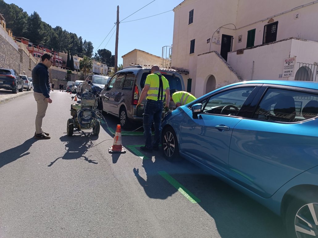 Operaris municipals han traçat avui les línies verdes que delimiten la nova Zona d’Aparcament per a Residents (ZAR) que s’ha...