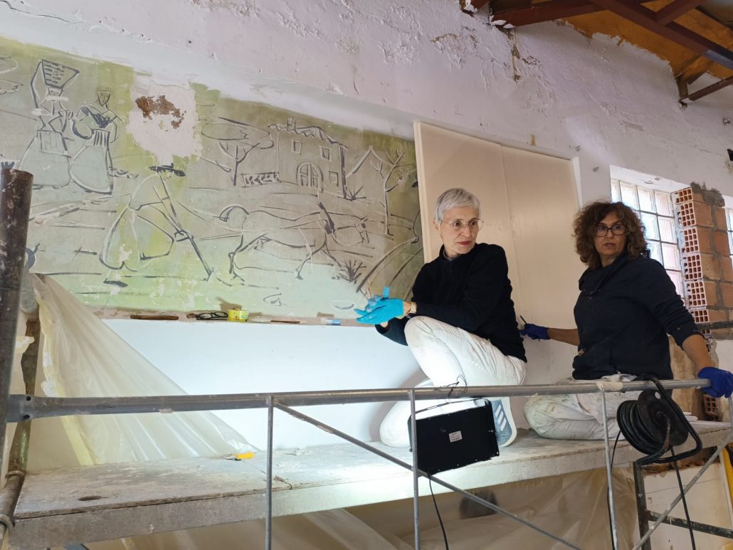 Els murals descoberts a la primera planta del mercat municipal, atribuïts a l’artista Pere Pavia, han entrat en fase de...