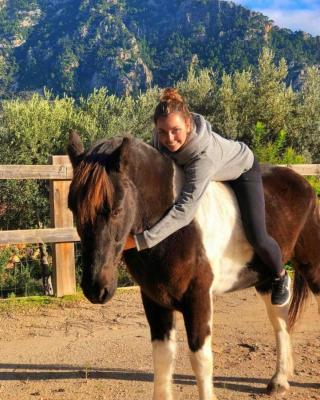 R.- Des dels 4 anys: els meus pares intentàrem apuntar-me a tot un ampli ventall d’activitats extraescolars -karate, ball, etcètera- que no m’agradaren fins que un bon dia vaig topar amb un cavall i des d’aleshores no me n’he pogut deslligar. I això que a ca nostra no hi havia tradició equina. Crec que el fet que sempre m’he sentit molt connectada amb la natura va propiciar que aquest estret lligam es produís. Fou una connexió brutal i inevitable, diria jo. Vaig anar a Son Molina, on muntava fins que als nou anys em regalaren un poni -Neska- que amb els anys anà seguit d’altres cavalls: Pinto -el cavall de la meva vida, ja mort- arribà quan tenia 13 anys i vull ressaltar que tenia més coneixement que jo mateixa; Rose, arribà al mateix temps que en Pinto i era l’egua del meu germà, és l’animal que utilitz per a les classes d’iniciació i acompanyament emocional; i finalment, Hazeem, que és un poltre de 5 anys i es tracta d’un pura sang àrab.