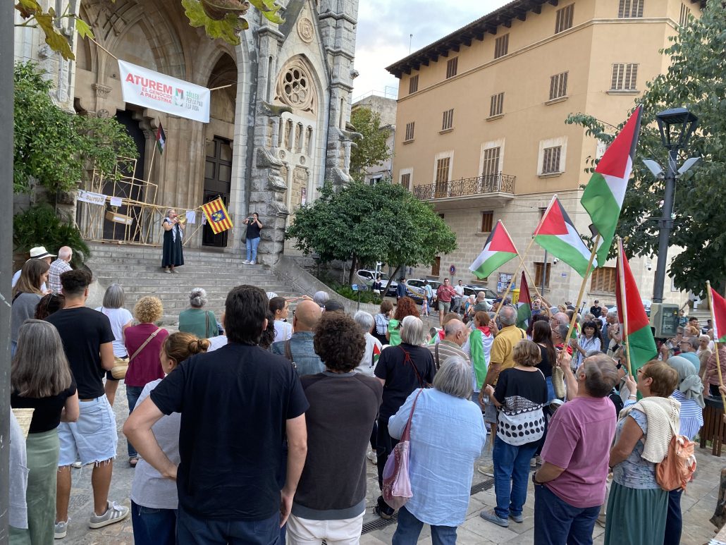 L’acte va tenir lloc davant l’església parroquial, que és on hi ha penjat el cartell que demana “Aturem el genocidi a Palestina”, ja que l’Ajuntament no va deixar penjar-la al seu balcó. Concentracions similars s’han duit a terme a nombrosos municipis del país després que el dia anterior Israel interceptàs la pràctica totalitat de les naus de la flotilla internacional de pau.