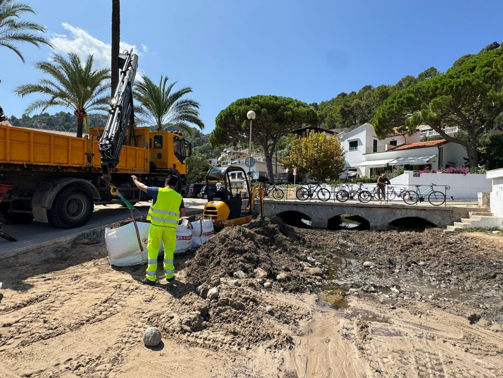 Els treballs han consistit en retirar la terra i la vegetació al tram del torrent que discorr per davall de la placeta de George Bernanos, a la platja den Repic per tal de garantir la correcta evaquació de l’aigua d’escorrentia.