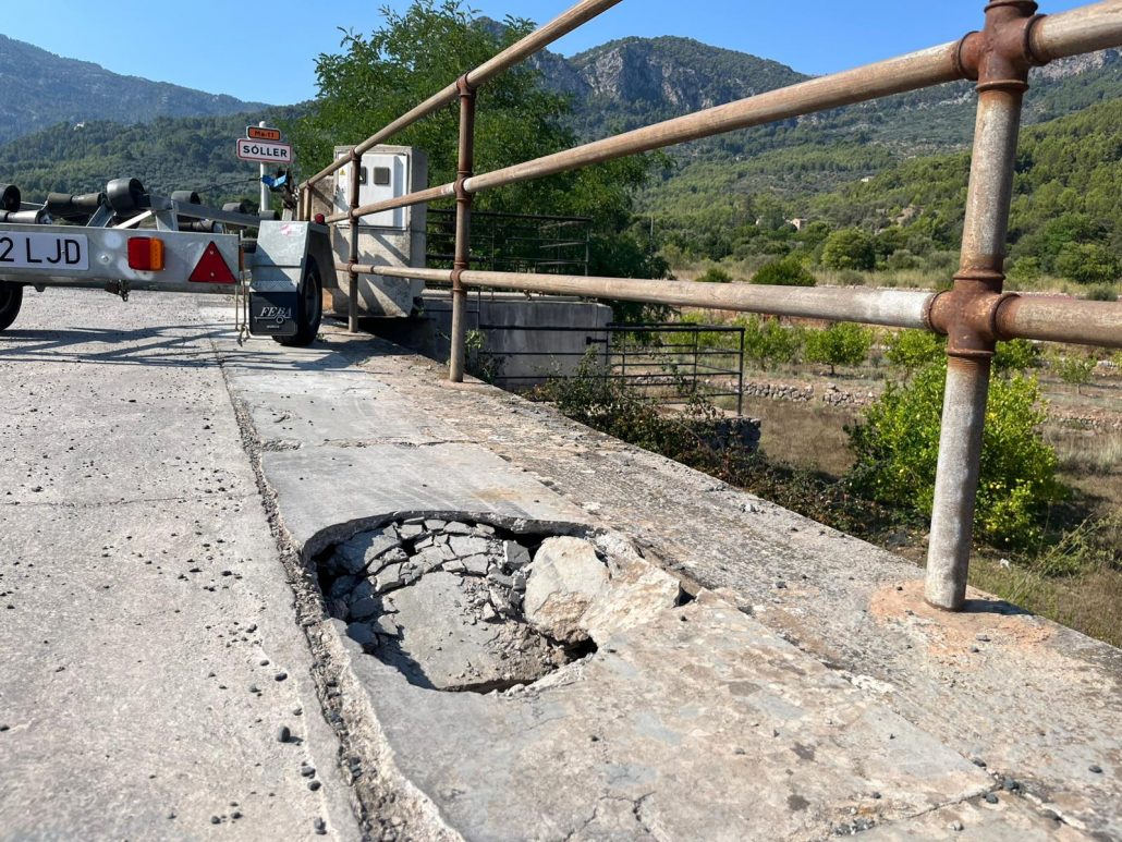 El mal estat de conservació del pont situat a la carretera del desviament, que travessa el torrent Major a l’altura de la central telefònica, s’ha evidenciat aquests dies amb l’aparició d’un forat al paviment. El forat ha aparegut després que s’hagi esfondrat la capa de formigó armat que hi ha en el lateral del viaducte.