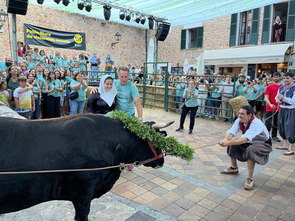 Un cop arribat a plaça, Margalida Cruz ha estat l’encarregada de coronar el bou i celebrar l’arribada de la bèstia en una jornada que s’ha celebrat sense cap incident.