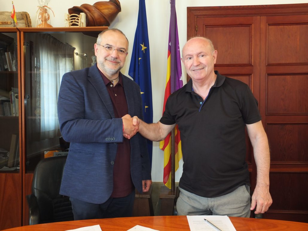 El rector de Sóller, Eugeni Rodríguez, i el batle, Miquel Nadal, han rubricat avui els documents amb els quals l’Església traspassa la gestió del centre parroquial Victòria al municipi de Sóller durant els propers 30 anys. La firma ha estat seguida de ben a prop per l’escolar major, Guillem Bernat, i per la regidora de Cultura, Antònia Frau, qui va representar l’Ajuntament durant el procés de negociació.