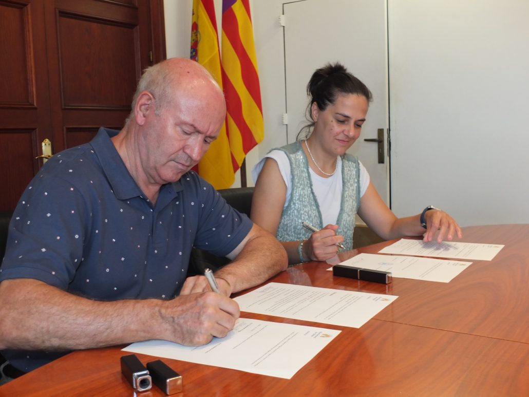 El batle de Sóller i l’artista pintora han signat avui els documents de cessió de les obres d’art, de les que tant Miquel Nadal com la regidora de Cultura, Antònia Frau, han elogiat i s’han mostrat agraïts pel gest d’Ana Darder. Es tracta d’una cessió permanent de les obres que duen per títol “Agosto”, “Hinojo silvestre” i “Los tres girasoles”.