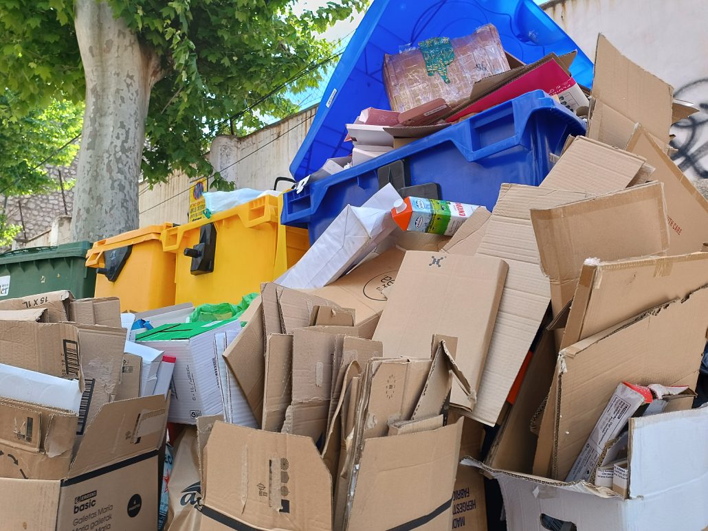 Un contenidor de cartró desbordat,