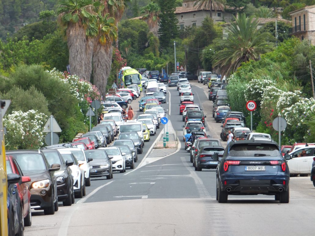 La gran afluència de vehicles, de residents i turistes, ha fet que algunes vies urbanes ben aviat evidenciassin saturació. És el cas del carrer de Cetre on la filera s’ha estès pràcticament des de la carretera del desviament fins a l’encreuament amb el carrer de Sa Mar. A altres vies urbanes, la situació ha estat la mateixa.