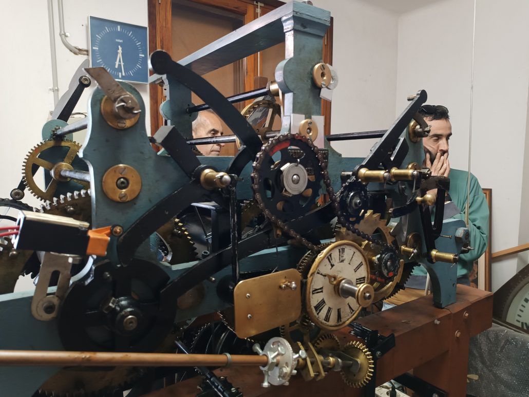Acompanyats pel regidor de Patrimoni, Juan Antonio Lorente, els tècnics de la Rellotgeria Brújula de Felanitx, avaluaren l’estat de la maquinària que fins i tot feren funcionar durant uns instants. En un primer terme es farà funcionar de forma provisional de cara al vespre de Cap d’Any. No serà fins al gener quan es desmunti completament per ser traslladada al taller dels rellotgers per fer-li les reparacions i posada a punt. Entre d’altres, s’hauran de reconstruir manualment diversos eixos per substituir els existents, canviar alguns coixinets dels engranatges i afinar el funcionament de tot el motor.