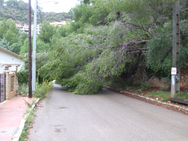 Dins dels nuclis urbans, també és destacable la caiguda d’arbres, com els de la urbanització Es Través, el carrer Puerto Rico o el mateig passeig Es Través.