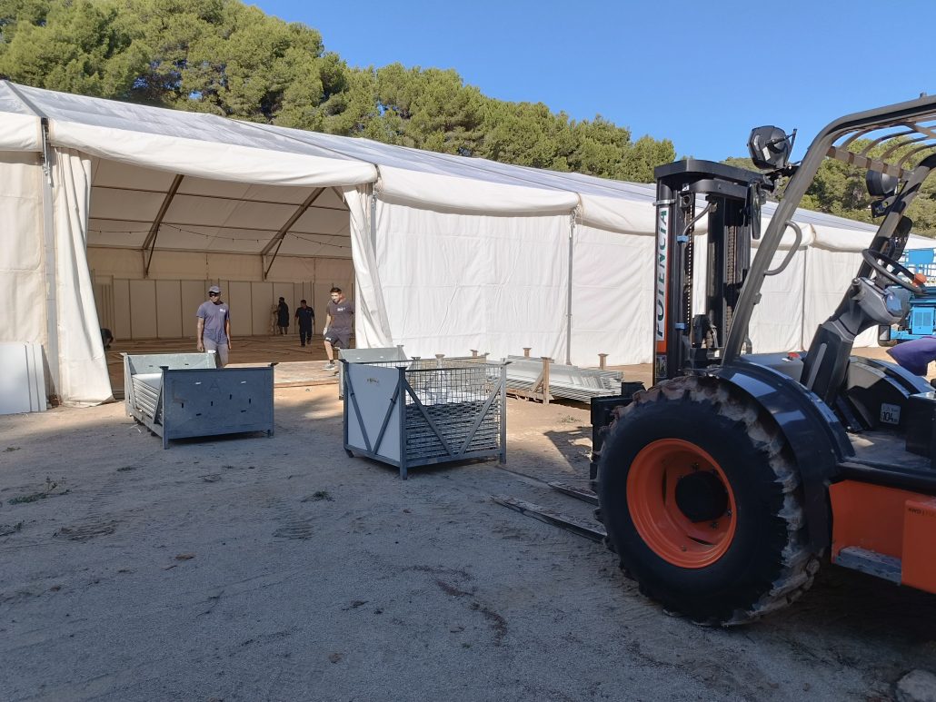 A la pista de futbol de l’Infante Lois s’estan realitzant els darrers preparatius per tenir-ho a punt per a la prova, amb la instal.lació d’una gran carpa que acollirà les diferents activitats que es realitzaran a l’entorn de les curses que es celebren el cap de setmana.