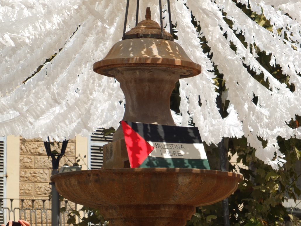 Des de fa unes setmanes, el brollador que presideix el centre de l’alameda de la Plaça de la Constitució de Sóller llueix una imatge poc habitual. La seva ornamentació habitual ha estat substituïda per un element clarament reivindicatiu: una bandera palestina col.locada al capdamunt de la columna, visible des de diferents punts de la plaça.