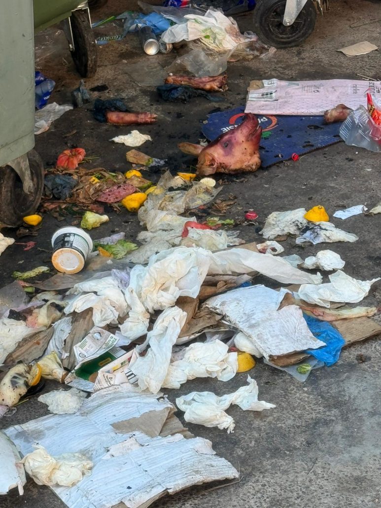 El cap de l’animal es trobava tirat al terra, al costat d’altres residus que estaven escampats al voltant dels contenidors, en una escena que, per altra banda, s’ha convertit en habitual a l’interior d’aquest recinte. A més del cap hi havia altres parts del seu cos, com ara els peus, tal i com es pot apreciar a la fotografia que acompanya aquest text.