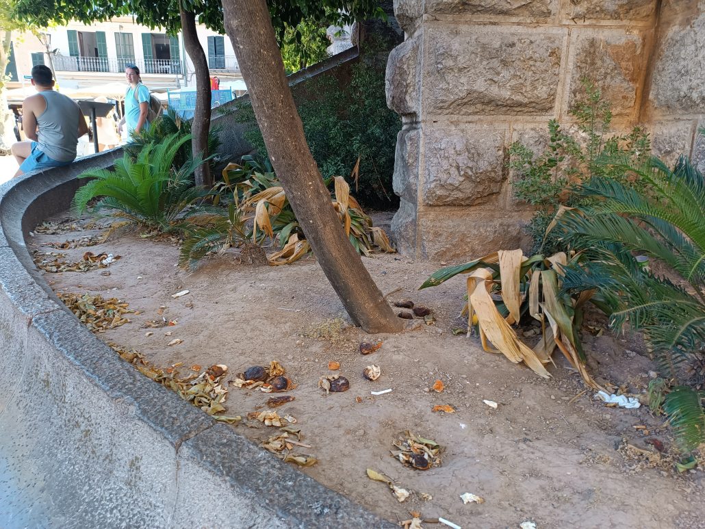 Uns veïnats de la zona han denunciat el mal estat de conservació d’uns espais ornamentals que, segons asseguren, estan abandonats. S’hi acumula brutícia com ara papers, mocadors, llosques de cigarreta o envoltoris de gelats com si fos una paperera. A tot això se li sumen desenes de taronges podrides i les restes de fulles dels tarongers que han anat caient.